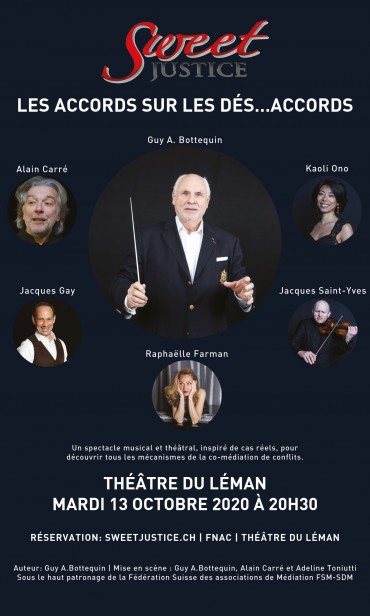 Suite au succès de la pièce de théâtre SWEET JUSTICE jouée à Genève en octobre 2014, GENEVACCORD A.D.R poursuit sa mission à Paris: plonger le public au coeur d'une médiation de conflit pour lui dévoiler tous les arcanes. Une série de représentations exceptionnelles a été donnée en juin 2015 à la mythique Comédie des Champs Elysées, 15 avenue Montaigne. Acteurs, médiateur, magistrat et avocats de renom étaient réunis sur scène pour une médiation à coeur ouvert, afin de démontrer la puissance de la logique gagnant-gagnant.